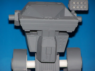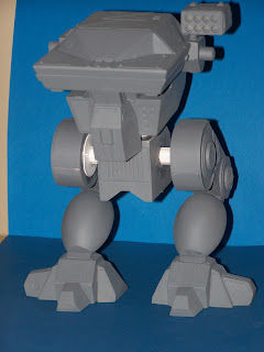 The Masakari is almost done...although the arms are giving me fits! I made some kick-ass PPCs and lower arms, but the upper arm looks feeble...going to have to work on that. Today I finished up the main body, and balanced it on the legs (it will connect using magnets when done). The question was asked about the LRM-10 in the Prime config...was I going to go TRO shoulder mount or MW4 integrated into the upper torso. Originally, I was going to go MW4 but I forgot to do it so I made a shoulder omni-mount and modified an Armorcast LRM-20. Right now, she stands about 9" tall.